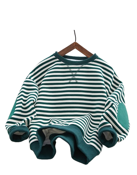This preppy-style pullover sweater is designed for boys and girls, combining classic striped detailing with modern comfort. Made from soft-treated polyester fabric, it features a fleece-lined, thickened design to keep children warm during autumn and winter. The round neck and long sleeves offer a comfortable fit, making it perfect for school, outdoor activities, and everyday wear.Specifications: