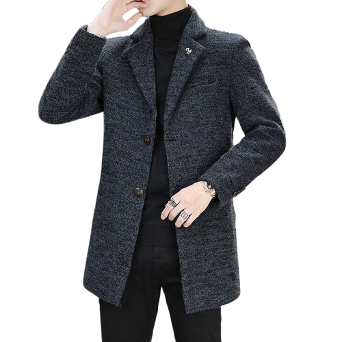 This men’s mid-length duster trench coat delivers a sharp, modern silhouette with a youthful slim-fit design. Featuring a classic suit collar and single-breasted closure, it offers a clean and refined look suitable for casual and smart-casual wear. Crafted from a durable polyester-based wool-style fabric, the coat provides structure and comfort without excessive weight, making it ideal for spring and autumn layering.
