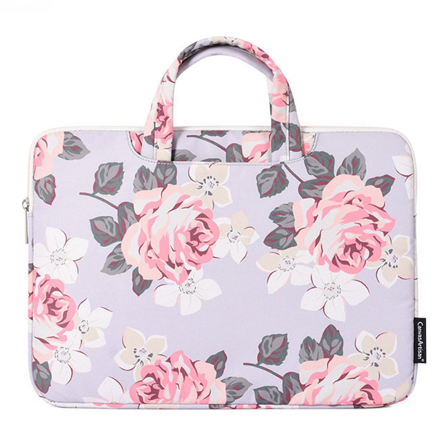 Keep your 14-inch laptop safe and stylish with the CanvasArtisan H40-B01 Laptop Sleeve. Made from durable, splash-proof polyester and featuring a printed rose pattern, this ultra-thin, lightweight sleeve offers full-body protection with an added outer pouch for accessories.